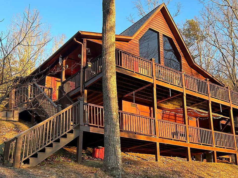 Welcome to a place where memories are crafted! This exquisite 2-bedroom, 2-bathroom chalet offers a wealth of delights. Approach your private sanctuary by driving up the paved subdivision road. Upon entering, hardwood floors, a wood cathedral ceiling, and a wall of windows create a welcoming ambiance, allowing ample light and showcasing breathtaking mountain views. Cozy up by the fireplace on chilly evenings or savor the outdoors on the screened-in side porch. The tastefully appointed and spacious eat-in kitchen, laundry facilities, and a bathroom are found on the main level, along with an inviting bedroom. Discover a bonus room with barn door access, previously utilized as a sewing room, with fold-up bunk beds ideal for children. Upstairs, the master suite awaits, offering delightful mountain views, a walk-in closet, and a full bath with a step-in shower. Enhancing the property's functionality, there's an outdoor shed for additional storage, and the stand-up crawl space features a workbench and partial flooring, providing even more storage options. Create lasting memories in this charming chalet!