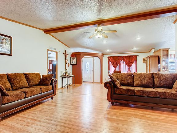 Very clean manufactured home with lots of open space and one of the biggest lots in the area. Newer roof, newer interior and exterior paint well cared for. Master bedroom has a master bath. All appliances stay. In the kitchen area there is eating space, a small island and a desk area. This home is move in ready for you and your family to occupy. Seller has already found a replacement home. We're ready for your contract!