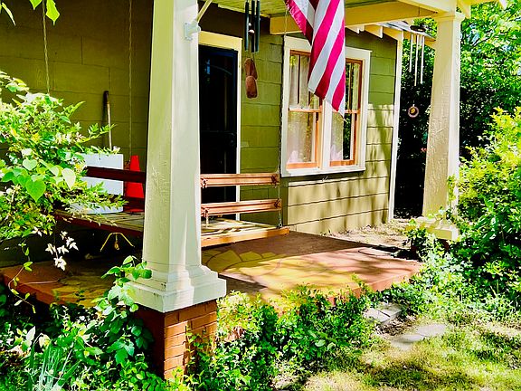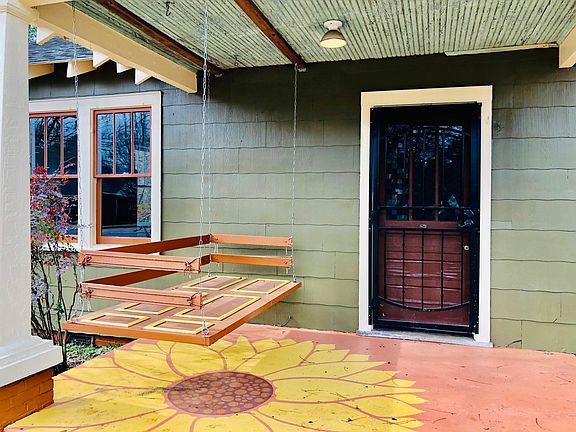 Classic and charming 1930s, 4 bedroom bungalow with artful kitchen, baths, and artistic details added throughout. All hardwood floors (oak and heart pine), large rooms, tall ceilings, separate living, dining, and sun rooms. Front porch with swing (and delightfully painted porch floor with large sunflower), rear courtyard, sunny areas for gardening, and next to a multi-acre open field. Abundant parking. Kitchen has antique farmhouse sink and beautiful green tile, bespoke cabinetry, gas stove, large fridge and customized, eat-in nook. Baths include artful, retro tiled shower, and newly renovated master bath with custom tile shower, new fixtures, and a sliding barn door. All the bedrooms are large; one is the entire length of the upstairs. Stylish light fixtures throughout, and an abundance of ceiling fans. Washer & dryer included. Property is just blocks from restaurants, grocery stores, pharmacies and more. Owner's husband is a licensed Realtor. Standard lease