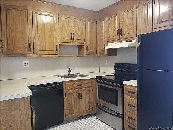 Freshly painted two bedroom end unit with new carpet. This ranch style townhouse is centrally located In the Desirable Glenport complex in the quiet North end of Bridgeport. It is a first-floor end unit with two large bedrooms and spacious closets. The open floor plan has a large window seat in the dining area and the living room has sliding doors which lead to the private balcony. This unit also has central air and a washer and dryer. Plus a very spacious two-car garage with extra storage closet. There is a back door that leads to an open yard. Located close to shopping and all major highways.