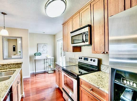 Beautiful, Sunny, and the very charming unit, at Footprints on the Bay, boasts an open floor plan and convenient deck off of the living room, which offers additional storage. This adorable end unit, with no unit above or below, features granite countertops, stainless steel appliances, and newer dual-paned windows. HOA amenities include a Clubhouse/Recreation Room, Exercise Room, Laundry Facility, Indoor Pool, Barbecue Area, and even a gated dog run, all located very close to this unit. Landscaping is beautifully maintained. Great central Monterey location, with easy access to Highway 1 and close to shopping, restaurants, golf, and all that Monterey has to offer, which includes MPC and the Friday afternoon Farmer's Market at the college, Naval Postgraduate School, Del Monte Shopping Center and much more! Correct address is 300 Glenwood Cir. #147 Monterey. I could not post correct a dress because Zillow automated address recognition and apartment complex, they are working on solving this problem. Owner pays for sewer, hot water, water, garbage. The tenant pays for electricity.