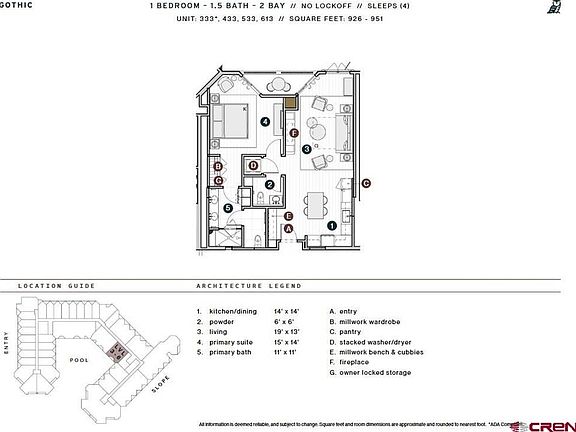 Located on the fifth floor, Beckwith Residence 533 offers a rare blend of intimacy and grandeur within The Beckwith’s exclusive ski-in, ski-out collection of approximately 49 to-be-built residences. This Gothic floor plan spans 926 square feet and features one bedroom, one bathroom, a powder room, and two private balconies that open to sweeping valley views. Take in the striking silhouettes of Whetstone Mountain, Mount Axtell, the charming Town of Crested Butte, and vivid sunsets that bathe the valley in color— along with serene views of the pool courtyard below. Step inside and discover light-filled, modern interiors bathed in soft earthy neutrals and warm wood tones that echo the alpine meadows and wildflowers, while contemporary finishes, unexpected pops of color and whimsical touches bring Crested Butte’s adventurous spirit indoors. The open-concept living space is perfect for relaxing or entertaining, flowing seamlessly into a gourmet kitchen, outfitted with natural stone countertops and high-end appliances, perfect for culinary exploration. The primary bedroom suite is a quiet sanctuary with rich textures and its own beautifully appointed en-suite bath featuring Kohler fixtures. A stylish powder room with custom wall coverings provides an added touch of comfort for guests. Additional features include in-unit laundry, secure gear storage, and access to The Beckwith’s world-class amenities—including seamless ski valet, spa, alpine taproom, adventure concierge, and more. Whether you're carving fresh tracks, exploring endless trails, or winding down in town, Residence 533 is your elevated basecamp in the heart of Crested Butte’s alpine wonderland. The Beckwith is the only ski-in, ski-out resort just steps to the lift in Crested Butte's base area. Replete with a four-star boutique hotel, private residences, a mountain & social club as well as world-class amenities including restaurants, luxurious spa, adventure concierge, and ski valet, a multi-phased reimaging of Elevation Hotel & Spa will transform almost every space at the resort. Construction will start this April with expected completion in the Winter 26-27 ski season. Inquire today in the Sales Center on the main floor of Elevation for more information.