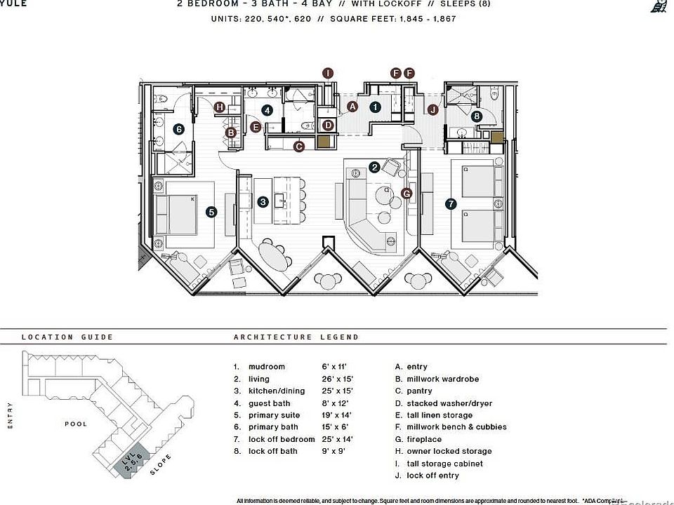 Set on the sixth floor with easy elevator access, Beckwith Residence 620 is a penthouse-level residence in The Beckwith’s Yule floor plan, offering 1,867 square feet of thoughtful design and effortless livability. This two-bedroom, three-bath home includes a lockoff suite, dedicated mudroom, and four private balconies. Inside, discover light-filled and airy interiors bathed in soft earthy neutrals, warm wood tones, and natural textures that echo the alpine meadows of Crested Butte. Whimsical design details and unexpected pops of color bring a distinctive sense of place and playful sophistication to every room. A sleek fireplace, wide-plank flooring, and oversized windows complete the airy, sun-filled living space. The gourmet kitchen includes stone countertops, a kitchen island with seating, a pantry, and high-end appliances— all framed by natural textures, warm wood tones, and mountain-modern design. A sleek electric fireplace and custom millwork details round out the space. The primary suite is a serene retreat, complete with a private balcony, millwork wardrobe, walk-in closet, and a spa-inspired en-suite bath featuring Kohler fixtures and radiant finishes. The secondary suite is configured as a lockoff suite with a private entrance, and its own balcony offering flexible hosting and additional independence. Additional features include a mudroom with millwork bench and cubbies, laundry with stacked washer/dryer, and owner’s storage for gear and essentials. The Beckwith is the only ski-in, ski-out resort just steps to the lift in Crested Butte's base area. Replete with a four-star boutique hotel, private residences, a mountain & social club as well as world-class amenities including restaurants, luxurious spa, adventure concierge, and ski valet, a multi-phased reimaging of Elevation Hotel & Spa will transform almost every space at the resort. Construction will start this April with expected completion in the Winter 26-27 ski season.