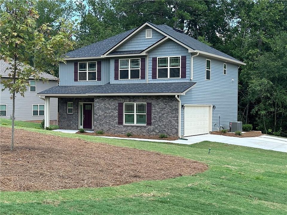 *****PENDING CONTRACT***** MOVE-IN READY!!! ***TAKE ADVANTAGE OF $15K FLEX CASH INCENTIVE REFLECTED IN SALES PRICE!*** Lot 59 -- Come home to this 2131 sq ft plan with an inviting front porch that guides you and your guests into the foyer of the LVP covered first floor that leads you into the open-concept fireplace-warmed family room, chair-railed Breakfast Nook, and Kitchen donned with granite counters and upgraded ceramic tile backsplash outlining dark cabinetry and stainless steel appliances. The RARE side-entry, spacious 2-car garage is just off the kitchen for housing your cars and additional storage while the Powder Room is easily accessible from the Family Room for guests. The Second Floor is where you will find your generously sized primary bedroom suite with the ceramic floor-tiled bathroom inclusive of a quartz-covered double vanity, separate tub and shower, and walk-in closet in addition to three spacious secondary rooms, a second double-vanity bathroom, and full-sized laundry room. For an outdoor retreat, relax on the deck off the first floor with a panoramic view of this amazing corner lot. Amidon Estates is a covenant community offering a clubhouse, pool, tennis court, and low annual HOA fees. This is all located in a Villa Rica prime location just minutes from the Tanner Medical Center, Mirror Lake Shopping Plaza, and I-20! Call/text me to schedule your tour!