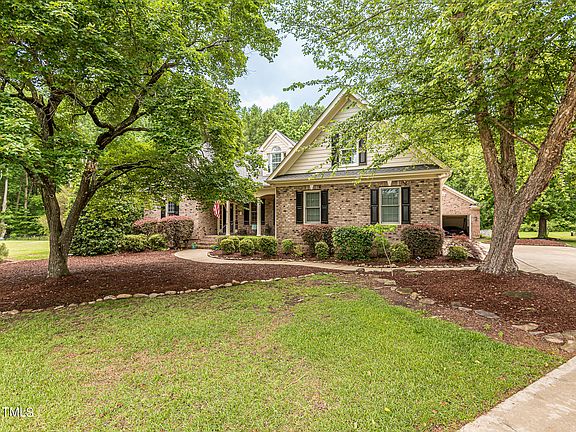 Discover the epitome of luxury living in this stunning home, nestled on a spacious, serene cul-de-sac lot. Your private backyard oasis awaits - featuring a saltwater pool, a pool house with a new granite wet bar and full bath, a waterslide, waterfall, and sundeck—perfect for entertaining! Step inside to an inviting open living space adorned with stunning hardwood floors. The kitchen boasts elegant oak cabinets, granite countertops, a tile backsplash, a walk-in pantry, and a gas range. The first-floor owner's suite is a true retreat with a tray ceiling, recessed lighting, and an expansive bath complete with a garden tub, water closet, and walk-in closet. The main level's open floor plan includes a dining room, a cozy gas fireplace, a breakfast room, a sunroom, a powder room, a laundry room, and two additional bedrooms with a full bath. Upstairs, you'll find even more space with two generous bonus rooms, a flex room, a fitness studio, a full bath, and a walk-in attic/storage area. Outside, unwind by the fire pit or enjoy the playground and partial fenced yard backing up to woods. Featuring a 2-car garage and detached garage/workshop, this home truly has it all! Close to major roads including the 540 expansion project, parks, shopping, dining, and just a short drive to downtown Raleigh!