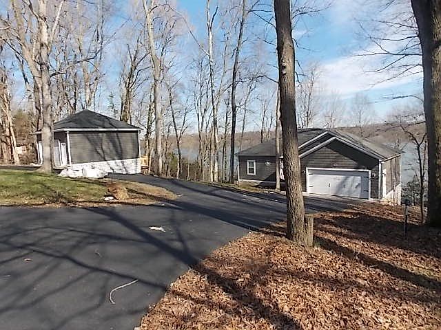 Lake front sloped Bluff Point property with dedicated boat slip. Split BR Open Floor Plan Remodeled with additional BR and Rec Area in Basement. Covered and Screened Back Deck on Main Level w/added uncovered grilling area. Partially Covered Deck Below. All new decking and w/ new railing. Features 2 car attached garage and 24x24 2 car detached boat garage/workshop. Wonderful main channel views with State Park directly across lake. Home for the summer or Home All Year within a few miles to town.