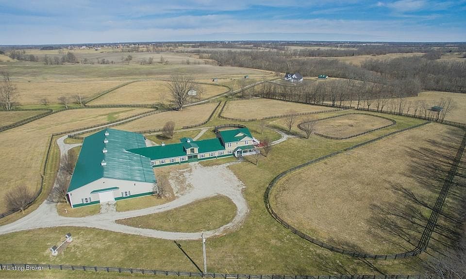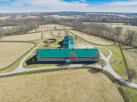 A picturesque 48 acre equine paradise in the heart of Shelby County Kentucky, the Saddlebred capitol of the world. Located on Hebron Rd bordering Fox Run Creek near Scott Station Rd. 15 minutes from I-64. No upgrade has been missed in this stellar opportunity for a turn-key equine farm. The property offers a 4 BR, 3.5 bath 2 story walk-out main home with 3 car garage and a 3 stall barn, and a 15 stall barn w/ attached 3 BR, 2 bath manager's home w/ office. The barn features a new roof and siding, a heated 60x160 indoor arena, 5 electric overhead doors, Lucas Equine stall front systems, Nelson stainless waterers and feeders, fans and single piece stall mats. A tack room w/ laundry, bath room, wash stall, equipment shop with concrete floor, feed room and loft open to all 15 stalls.