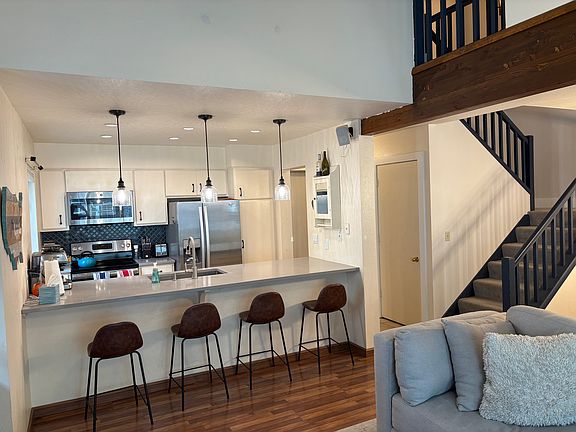 Located adjacent to the Homestead Court Club and 2 blocks from the open space trails and trail leading down to Homestead retail & restaurants, this Homestead Meadows townhome is in an ideal location and one of the few buildings in the valley that gets mail delivered to your doorstep (no PO Box). Enter the unit from your private deck with outdoor storage locker plus room for an electric grill and patio furniture located on a tranquil tree-lined courtyard steps from the large parking lot. Inside on the open-flow main level is the living room, dining room, kitchen with bar seating, laundry, half bathroom, and storage with a coat closet and under-stair storage.The many windows on the main level bring the outdoors inside, and trees surrounding the property help keep the unit cool on hot days. Upstairs you will find 2 bedrooms with closets and a full bathroom with shower/tub combo. The primary bedroom has space for a king bed set and boasts vaulted ceilings and large windows. The second bedroom easily fits a queen bed plus side tables, and has a bonus bunk space above it. A hallway wall ladder accesses a finished attic. Included for tenants of this unit is gym membership to the Homestead Court Club fitness center which has indoor & outdoor tennis courts, indoor pool, hot tub, steam room, outdoor volleyball, basketball, and pickle ball courts, free fitness classes (Pilates, barre, yoga, Cardio ), and a huge state of the art gym complete with Peloton bikes, treadmills and yoga mats. This great unit won't last long, so come see it today! Unit Stats & Features: 1,074 sqft + attic, and storage spaces 2 bedrooms, 1.5 bathrooms Unassigned parking spots 1 family Court Club gym membership or 2 Adult memberships Dual up/down privacy shades on all windows Baseboard/electric heating No A/C Appliances: electric stovetop, oven, dishwasher, microwave, refrigerator, washer & dryer Restrictions/Requirements: No Pets (HOA doesn't allow renters to have pets) Non-Smokers Must be willing to abide by HOA rules Subject to Background and Credit checks References required. Renters Insurance is required. Cannot use fireplace per current HOA rules Rental Terms: $3,2000/month for 1 year lease plus utilities (cannot do partial year lease) Water, Sewer, Trash, Snow Removal, HOA and Court Club Membership dues included in rent Utilities are not included in rent / to be set up and paid for directly by tenant (electric, Wi-Fi, Satellite (DirecTv or Dish)) First, Last month's rent plus $3200 security deposit required