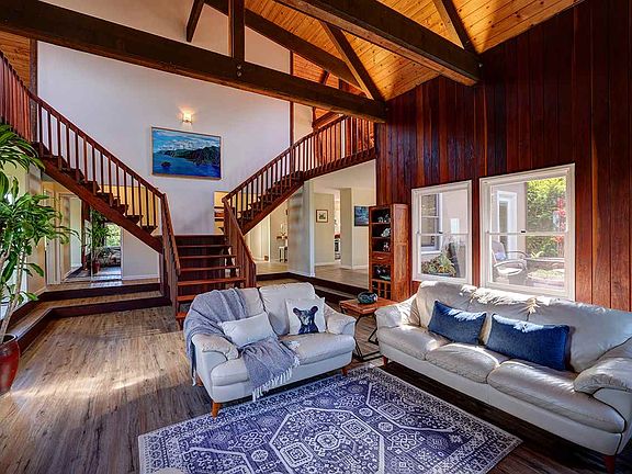 Irreplaceable location backs up to thousands of acres of open land and is only 15 mins to Kahului. Rare offering of home and cottage at the top of desirable Kula 200! Privacy and serenity awaits, with incredible night time star viewing and ocean/Haleakala views. This property is special & unique. Fruit trees, an olive grove, raised bed garden and your own Par 3 golf hole with elevated tee are just some of the joys awaiting you. Plenty of outdoor living areas including a tree covered fire pit area, star viewing deck off the MBR, a custom red eucalyptus sunset viewing deck set in an elevated flower garden and more. The pretty landscaping provides year round color. Both the main home and cottage have fireplaces with lava rock chimnies, high ceilings and plenty of charm and are separated by an elevation change that provides privacy from one another. The main home is open and airy with beautiful acoustics for musicians, and is a wonderful entertaining home with pretty views from every window, including ocean views from the entire front of the house. Robusta wood (red eucalyptus from Olinda) adorns the living room walls, stairs and upstairs floors, creating a rich, warm environment. The home is currently a 2 bedroom but the upstairs lofts have possibilities for additional usage or conversion into bedrooms. A workroom off the garage w/ new large tool chest are included as well as a 75" wall mount TV above the fireplace. There is also a 192 sf barn/shed in the pasture. Fruits & more: lemon, pink lemon, lime, juicing orange, navel orange, tangerine, clementine, mango, pineapple, mountain apple, papaya, strawberry papaya, raspberries, strawberries, elderberries, ruby red grapefruit, guava, strawberry guava, lychee, edible ginger, sweet potato, Okinawan sweet potato, lemongrass, rosemary, thyme, mint and more. You won't want to miss seeing this gracious, one of a kind kama'aina property.