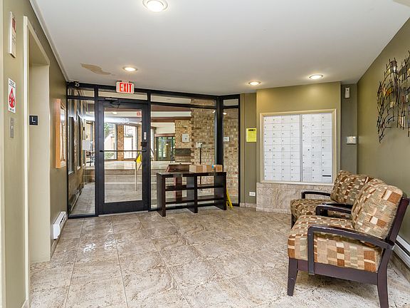 Nicely laid out one bedroom condo with view of pond and fountain. Walk out patio door to spacious balcony. Commercial grade flooring throughout- additional flooring to match kitchen and bath to the rest of the space in storage Plenty of amenities in complex including laundry, storage, bike storage, tennis courts, jogging track and pool. Underground heated parking.