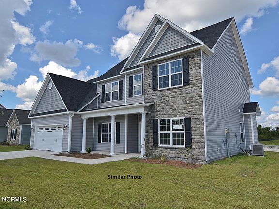 Welcome to the highly desired & popular community of Onslow Bay. Brand new construction built by Onslow County's most trusted & preferred builder, featured in Builder 100/ Top 200 Builders in the country. Onslow Bay is a hot spot, 3 miles to MCB Camp Lejeune's Piney Green gate, 14 miles to New River Air Station & minutes to area schools, shopping & dining. This beautiful neighborhood is sure to impress, complete with a clubhouse area & community pool. The Burton floor plan features a charming front porch boasting great curb appeal. 4 bedrooms/2.5 bath, approx. 3078 heated square feet. A quaint foyer opens to the formal dining room and formal living room for a warm welcome home. A 12 x 12 kitchen with bar top is also open to a cozy breakfast nook and a spacious 15 x 16 family room. Kitchen appliances include a smooth top range, dishwasher, and microwave. The family room features a ceiling fan and a fireplace with decorative mantle. The master suite is huge, 22 x 16, and is located on the main level. Accented by a ceiling fan and a 7 x 7 walk-in closet! Relax and unwind in this dreamy master bath with a double vanity, separate toilet closet, and a separate tub/shower. Bedrooms 2, 3, and 4 are oversized and all have actual walk-in closets. Yes please! A grand 19 x 18 bonus room is a great den space or game room. There's even a home office space that could also be used as a playroom or whatever additional space you may need. This amazing floor plan is big and beautiful. Complete with a covered back porch and a 2-car garage. Call today to view. NOTE: Floor plan renderings are similar and solely representational. Measurements, elevations, and specs may vary in final construction. Limited selections for buyer to choose. Call L/A to verify.