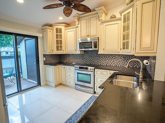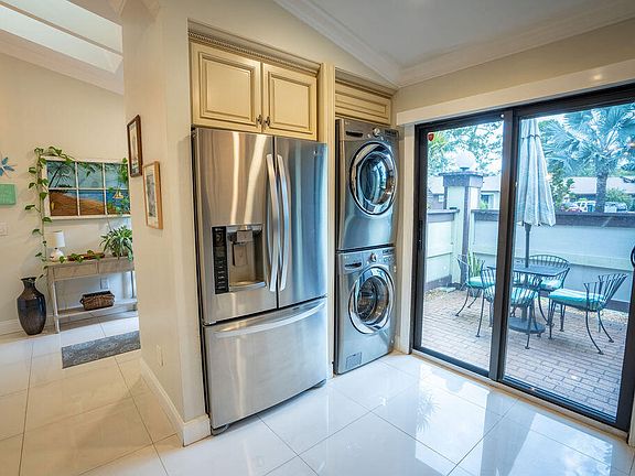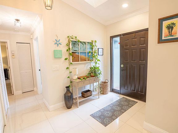 Unique, spacious villa, located in the coveted Stratmore West community, offers a 2 bedroom+living room, and 2 full bathroom layout. Originally converted and redesigned from a 3-bedroom floor plan, this home offers a large airy, open look and feel living room with installed architectural arches, high vaulted ceiling, recessed lights, and a skylight. Gourmet kitchen offers custom-built cabinets and granite counter tops with backsplash, all new high-end stainless steel appliances (dishwasher, microwave, oven, washer and dryer, and refrigerator) and is designed for beauty and functionality with breakfast patio right outside the kitchen. Originally 1298 sq ft, it's expanded to 1428 sq ft with fully converted to a year round use florida room with installed air-conditioning, wall insulation... and can serve as an office, guest bedroom, or a place to relax. Brand new roof and skylights were just installed in 2021. This home offers walk in closets plus plenty of additional storage space throughout, brand new floors, high-end bathrooms, patio sliding door, ceiling fans, light sconces, and 2 built in TVs. Basic cable TV is included with HOA fees. Home has 3 private parking spaces in front (1 private + 2 guests) with plenty of additional parking available. Madison Green Country club located within 2 minute drive with variety of parks within a walking distance. Community is designed for walking and provides 2 heated pools with showers, clubhouse, gym with full amenities and recently upgraded equipment. Resident library is available. Community is 15 minutes away from the West Palm Beach airport, and a variety of shopping and dining is within few minutes drive. Downtown Palm Beach City Center is within 20 minutes drive. This is a great opportunity as a unique, designer, turn-key home to spend winters in Florida or make a permanent residence.