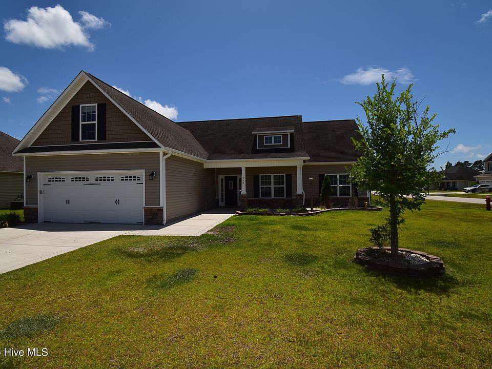 Beautiful 3 bedroom 2 bath home with a bonus room over the garage located in Sterling Farms. Seller is offering $5000 towards buyer's closing costs with an acceptable offer. This home boasts over 1900 square feet with brand new LVP flooring in the living room, dining room, breakfast nook and the master bedroom. The formal dining room offers coffered ceilings and wainscoting. The living room offers a vaulted ceiling, fireplace and the and is open to the kitchen and bright sunny breakfast nook. The kitchen has dark cabinets, subway tile backsplash and stainless-steel appliances. The split bedroom floor plan offers extra privacy for your stunning master suite with trey ceiling, spacious walk-in closet and master bath with dual vanity sinks, large soaking tub and walk-in shower. The guest rooms are both nice size with laminate flooring and ceiling fans. Don't miss the privacy fenced in back yard with a patio perfect for entertaining. Sterling Farms is also one of the few neighborhoods that offers a clubhouse and pool for homeowners. Located minutes from shopping, schools, base and beaches - no City Taxes.
