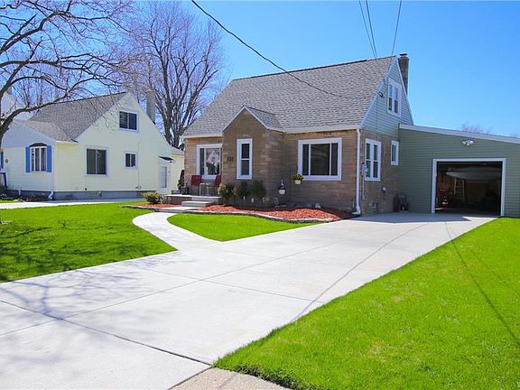 Big, Beautiful Backyard! 3BD/1BA Cape in Amherst. Low taxes! Updated Kitchen and Bath, Partially finished basement with recessed lighting, separate laundry room and storage. Attached garage with access to your patio and fully fenced area of the yard. New siding, gutters, Electrical service, concrete driveway, walkway and front porch. Well kept and a convenient location. Make your appointment today!