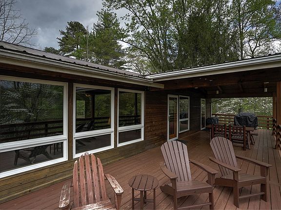 THE HIDEAWAY! Says it all....the spacious 4bdrm/2ba offers complete privacy and yet very convenient! Overlooking the long range mountain views and conservation, there is room to run around naked! This jewel has been a successful vacation rental but would also make a great family home! New spacious kitchen with granite countertops, gas cooktop and wall oven, new windows on the main floor, new bath on main floor, new floors, new fixtures and a new metal roof (2017)! In the finished basement you'll find plenty of space to spread out. All of the bedrooms are generous sized and you have a fireplace w/hearth on each floor. You'll love the covered deck, where you can enjoy the solitude! The yard is ideal for pets, children or the gardener in the family. Want to walk to the lake? Okay, your property runs right to Fontana Lake/Tennessee River with a walking trail for access! Behind you is a 126 acre USFS tract. Did I mention that its private? Hard to come by properties like this! Easy access, no steep climbs and end of the road privacy! Conveys mostly furnished with exception to dining table and personal belongings. Frontier internet; cell service