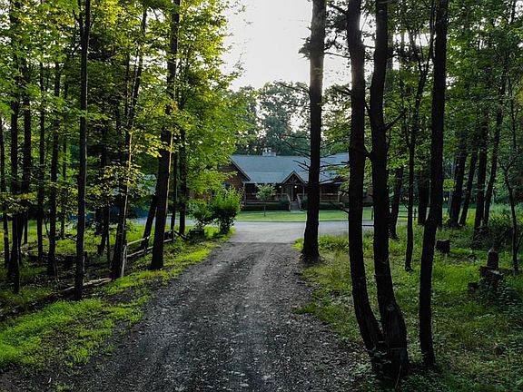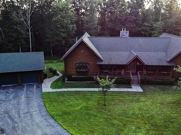 Custom-built log Ranch home on 61+ acres offering first floor living w/ inviting open floor plan. Main: 2 bedrooms, large bathroom, kitchen, laundry. The Owner's bedroom and en-suite's large tile shower, soaking tub, dual sinks & large walk-in closet w/access to storage. Relax in the attached sitting room/office/den. Your welcomed by the beautiful fireplace in the great room & thoughtful design features thru-out from the architecturally-designed cathedral ceiling to the hardwood floors.The LL: 2 bedrooms w/egress,full bath&large family/game room.A sliding barn door closes off the unfinished mechanics room, storage and workshop w/access to side yard&3 bay garage.The front porch overlooks driveway/wooded yard where you can watch the deer & turkey stroll- they have found the pond. Back deck is ready for an easy evening fire in stone fireplace! ATV's welcome.Great for a camp, retreat or horses! 45 minutes to PSU and Altoona. Only 3 miles to shopping, restaurants, Fuel and Farmers Market.