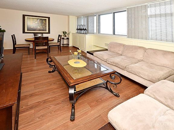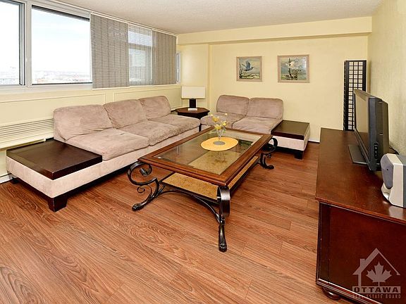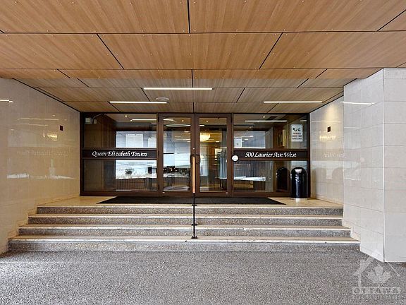Ready for quick occupancy 2 bedroom, 2 full bath condo on the 24th floor at the Queen Elizabeth Towers; well known for its numerous amenities and proximity to Parliament Hill and the LRT station. Laminate floors through all principle rooms; master bedroom features a walk-in closet and renovated 3 piece ensuite bathroom w/heated floor; in unit laundry, Kitchen with some newer appliances has lunch counter; large living - dining space with wonderful view to the West - North (Ottawa River, Lebreton Flats, & Gatineau's). Underground parking included. Living space offers over 900 s.f. Enjoy 24 hour concierge service, indoor pool, hot tub, 2 patios, party room, guest suites, library, workshop, billiard room, 2 exercise rooms, saunas. May be purchased furnished as viewed (additional $2,500). Move in ready! 24 hours irrevocable on all offers.