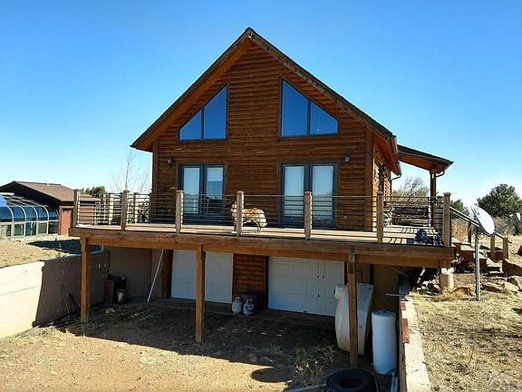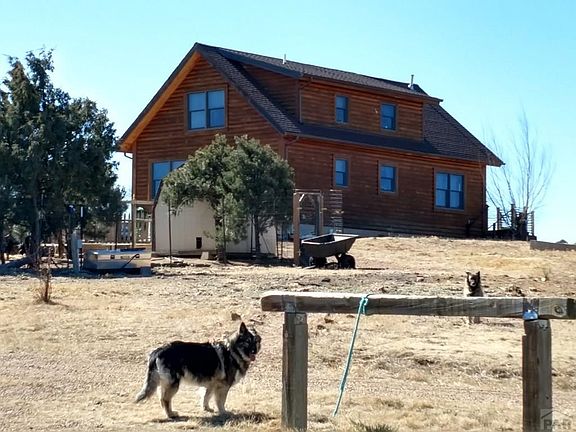 Now, this is Colorado!!! Come home to this 3 bedroom, 2 bath log home on 71 acres with awesome mountain views and the peace and quiet you have been seeking. Included is a huge 21' x 31' Sunroom / Guest House that is 80% glass. You can sit in this sunroom during the winter evening and watch the stars and the snow. There is a wet sauna, Steam Shower and 1/2 bath area in this sunroom/guesthouse with enough room to add a hot tub. There is also a very large 24' x 24' metal workshop with a 10' x 10' office area for the craftsman, a shed and a garden area. The inside of the home is mostly natural wood and has hardwood floors, an eat-in kitchen, a formal dining area, a pellet stove in the large living room, a large master bedroom located in the upstairs loft, and plenty of room downstairs. Large windows in this home provide great views of the surrounding mountains. This is a great home for retirees or someone who works from home. However, if you work away from home, you will enjoy coming home to the solitude that this home offers. The City of Walsenburg is only minutes away.
