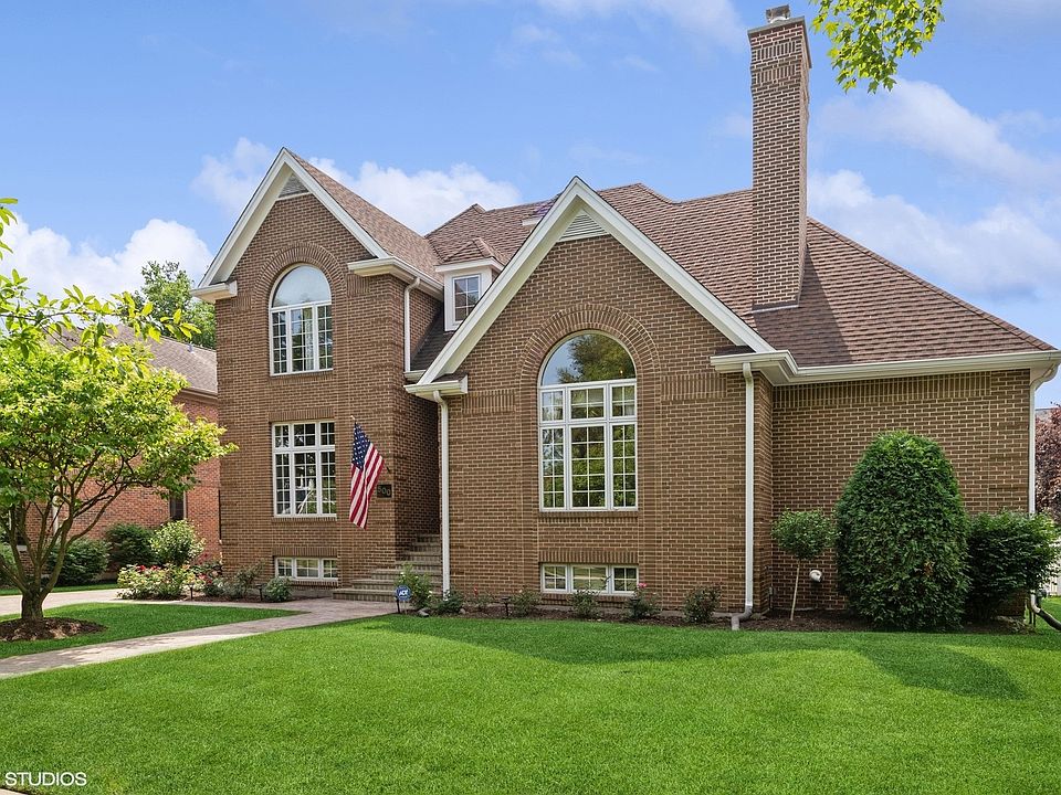 Stunning brick and cedar home in an amazing Country Club location. Over 4241sf above grade in this 5 bedroom 4.1 bath walk to town home. Hardwood floors throughout the main floor that features a vaulted ceiling living room with a gas fireplace, separate dining room, a butler pantry with a wine fridge and ice maker. The open concept family room with a gas fireplace leads into the remodeled kitchen with custom cabinetry, granite counters, Wolf oven/range and a Subzero refrigerator. Stool seating at the island as well as an eating area. The amazing four season sun room over-looking the yard is a great place to relax. A first floor master suite with a spa-like master bath featuring a Jacuzzi soaking tub, steam shower and a large walk-in closet. First floor laundry in the mudroom that leads into the 3 car attached and heated garage. The second floor features four additional bedrooms and two more full bathrooms. A third floor bonus room makes a great playroom or could be a nice home office. The full finished basement has a rec room with a 3rd gas fireplace, a large game room, and a nice size workout room with a full bathroom. Outdoors you have a beautiful stamped concrete patio with pergola that looks out to the professionally landscaped yard. A great driveway area for basketball next to the yard as well. This home is an amazing location walking distance to Uptown Park Ridge, Hinkley Park and the Park Ridge Country Club. Just a few blocks to the Metra, easy access to the highway, and award winning schools.