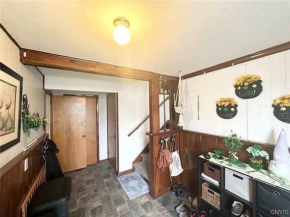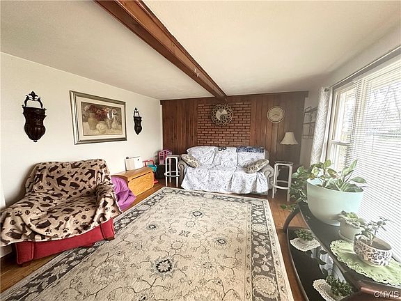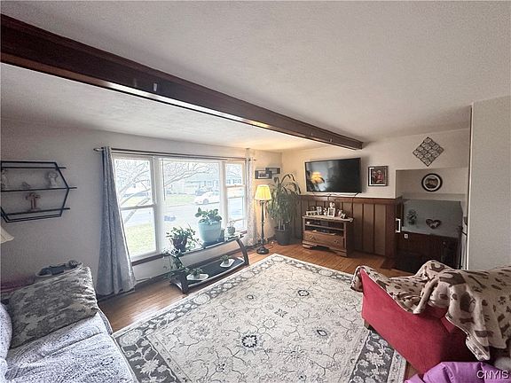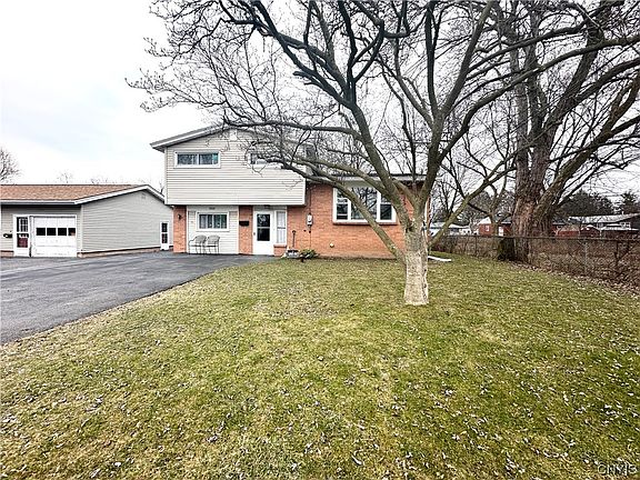 Four bedroom, 2 1/2 bath split level home in ESM School District! 1702 square feet with open foyer/entryway leading to first floor bedroom, full bath and kitchenette. 2nd level features living room with hardwood floors, spacious eat-in kitchen with ample cabinets for storage (chest freezer does not convey), and a den/family room in the back that is currently being used as a bedroom (temporary wall/divider can easily be removed) and 1/2 bath. Upper level has three bedrooms & full bath. Basement laundry (washer & dryer included), extra basement storage area with walk out entry (currently used as workout/gym space), forced air heat, sump pump, & verizon fios available. Backyard patio, partially fenced yard, detached garage with electric service, paved driveway with ample parking, this home offers convenience of parks, shopping and Syracuse restaurants while situated in ESM School District.
