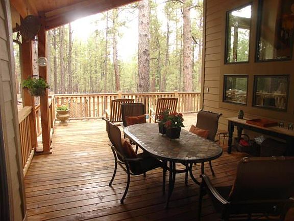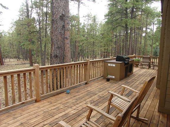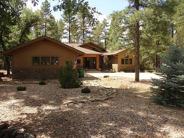 Completed in 2006, this home is located in the most private area of Forest Highlands, backing a dense forest of Ponderosa Pines. This updated home has the perfect blend of rustic elegance and is complete with beautiful hardwood floors, floor to ceiling stone fireplace, granite slab and stainless steel appliances in the kitchen. Nothing more to say other than this is a newer home with fabulous finishes throughout on a spectacular lot. One of a kind in this price point.