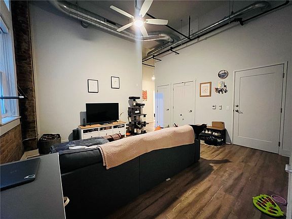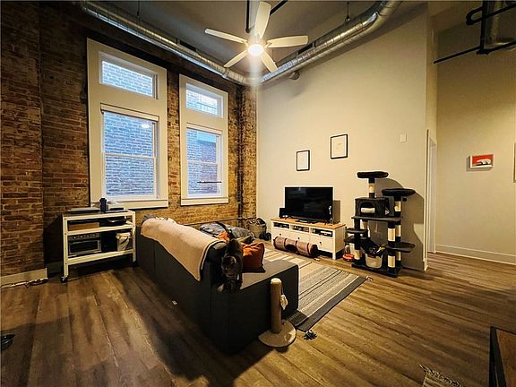 Welcome to the St. Peters Residences located in the remodeled St. Peters church in the historic Deutschtown neighborhood. Find your very own sanctuary in this incredible 1 bed/1 bath apartment. This apartment has abundant tall glass windows with incredibly tall ceilings about 20 feet high. Gorgeous exposed brick in the kitchen, living room, and bedroom.The building has been completely remodeled while maintaining the original stained glass, exposed brick, and wood beams. This apartment is equipped with a washer/dryer in unit, central AC, dishwasher, microwave, granite countertops, stainless steel appliances, vinyl wood-like flooring, and off-street parking option. A secure bike room with ground level entrance and storage lockers available. Pet friendly with additional fees. about pets.