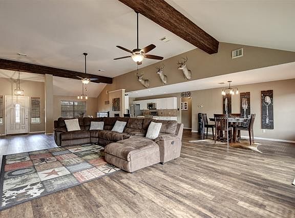 SERENITY!! Enjoy the peace of the gorgeous hill country on 5.96 acres with beautiful oak trees. This property is 100% fenced with a 2900+ sq ft home including 3 bedrooms 2 baths, office, formal dining, breakfast area and an enormous play/game room. Plus, a 2 car detached garage. Enjoy the sunset views and starry nights. Remodeled in 2015 and new roof shingles in 2016. Located 10-15 minutes from HEB and DSISD schools. New pool and jacuzzi in 2020 with full sized horse arena, stable and RV Parking.