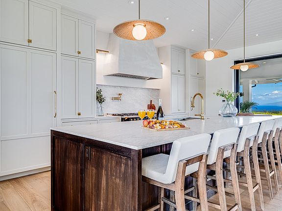 Set on 2.56 acres in the Mahana Estates community within the Kapalua Resort, 500 Mahana Ridge is where timeless craftsmanship, smart design, and luxurious resort-style living come together. This custom-built retreat spans over 6,449 sq. ft. of total living, entertaining, and lanai space, with a 4-bed, 4.5-bath main home offering 3,742 interior sq. ft., a 462.5 sq. ft. 2-bed ohana, and 1,280 sq. ft. of lanai space that allow a seamless flow between indoor and outdoor spaces. A showcase of design-forward luxury, clean, modern architecture plays beautifully against Kapalua's stunning backdrop, with exterior rock walls made from locally sourced Kapalua stone. A standing seam metal roof, Marvin windows with black wood interiors, and 8 ft. solid wood doors throughout set the tone for the quality you'll find inside. Open-air elegance defines the main home, with a 14.5-ft. vaulted ceiling and a custom Carrara marble fireplace in the Great Room, which flows effortlessly into the kitchen and lanais beyond; a Sonos sound system allows you to set the perfect mood. The kitchen boasts Carrara marble countertops, Venetian plaster hood, Maui-built custom cabinetry and luxury appliances: Sub-Zero fridge and freezer, a Lacanche double oven, Wolf vent hood, and dual Miele dishwashers. A large island, with room for 6 barstools and end-cap shelving, anchors the space for everyday living. A pantry features a Sub-Zero beverage fridge, Wolf microwave, Moroccan Zellige tile backsplash, and soapstone countertops. The home’s 4 bedrooms, each boast spa-like en-suites. The primary bedroom suite is a private escape with 12-ft. vaulted tongue-and-groove ceilings, dual walk-in closets, and captivating ocean and pool views. The attached bath boasts Waterworks brass fixtures, dual vanities, a soaking tub beneath a statement chandelier, a massive walk-in shower with Moroccan Zellige tile, and a private outdoor shower. Bedrooms 2, 3, and 4 include walk-in closets and private outdoor showers. Bedroom 2 features an ocean-view lanai and en-suite with Carrara marble finishes, while bedrooms 3 and 4 share a Jack & Jill bathroom with black onyx countertops and dual shower heads. A flex room off the main living area works as a home office, wine room, gym, or creative space. While the mudroom off the garage boasts custom oak lockers, drawers, and slate flooring. The outdoor kitchen is outfitted with a Sub-Zero fridge, Wolf grill, black onyx countertops, and a gas fireplace with brick surround. Slate tile and Sonos sound ensure a refined ambiance. In the backyard, a stunning 14' x 40' saltwater pool beckons, complete with a Baja shelf and an oversized jacuzzi for 8. A pool bath offers direct access from the lanai. The 462 sq. ft., detached Hale with a full bath, is a flexible space that is equally ideal as a 1 or 2 bed-guest suite, office, or creative studio. This home features smart systems including a York 3-zone AC system, whole-home water filtration system, solar hot water heater, an indoor sprinkler system, security wiring and outdoor cameras, and Sonos sound system in the Great Room and main lanai area; the rest of the home is pre-wired for Sonos. Mahana Estates offers elevated living in one of Maui's most celebrated resort communities. Perched between the West Maui Mountains and the Pacific Ocean, this 125-acre enclave delivers the ideal Maui resort lifestyle. Residents are minutes from the award-winning Kapalua Plantation Golf Course, home to the PGA Tour's Sentry Tournament of Champions. Kapalua residents benefit from an easement that allows them to cut through the Ritz Carlton to access Fleming Beach and the golf course. Residents can drive golf carts into town or down for a massage at the Montage Spa. You can also purchase a membership at the Kapalua Club and enjoy benefits that include access to the Spa Montage, Beach Club, advanced tee times at two championship golf courses, and more! 500 Mahana Ridge is more than a home, it's a lifestyle.
