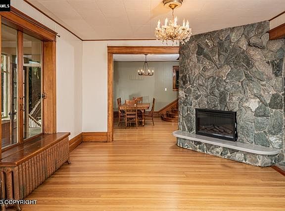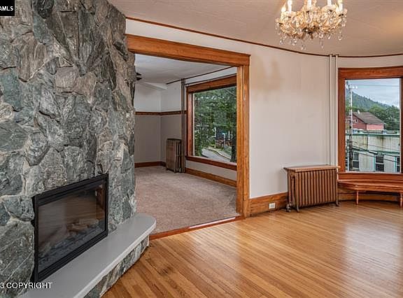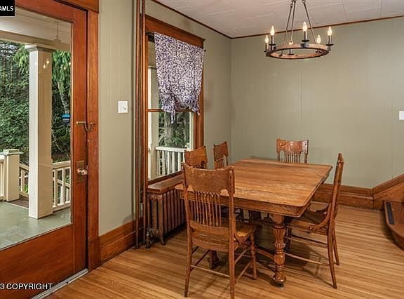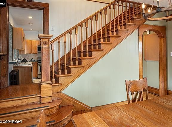 This Historic Queen Anne-style masterpiece, the Burkhart House, was built in 1904 and is perched above beautiful downtown Ketchikan. The locally famous home, with view of Tongass Narrows, is just under 4,000 SF of careful craftsmanship, comfort, and original attention to detail. Updated Kitchen with tile floors, wood block and tiled countertops, custom cabinets and stainless steel appliances. Original hallway windows throughout the home let in loads of natural light and highlight the original Douglas Fir floors and paneled doors throughout most of the home. A separate, private one-bedroom rental is located on the main floor, complete with kitchen, laundry and full bathroom. Large basement area with an attached one-car garage plus a set of four detached garages. Fantastic opportunity for either a B&B business and/or a private residence with professional office space. All within walking distance to downtown shops, restaurants, and entertainment.
