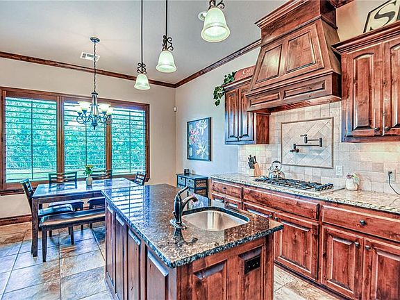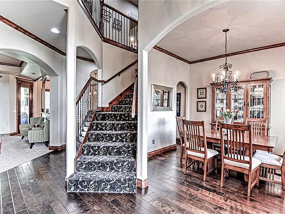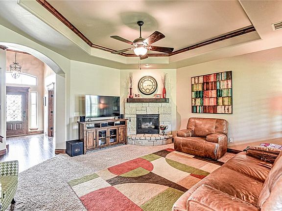 As you enter this stunning home you'll notice the beautiful wood flooring with a formal study and Formal dining near the entry. Large beautiful windows with plantation shutters really set the mood and allow you to take in the views outside. The study features french doors a built-in desk and bookcases. Arched transitions lead you into the carpeted living room with trayed ceiling, and corner fireplace. The kitchen features granite countertops, rich wood stained cabinets, a center island, and corner pantry. The downstairs master with trayed ceiling features a fabulous en suite with a jetted corner tub, walk-in shower, double vanities, and his & her's walk-in closets. A half bath and a large utility room with sink complete the lower level. Beautiful stairs that wrap around the formal dining lead you into the upstair bonus room and 3 spacious secondary bedrooms with one Jack & Jill full bath and another full bath. An oversized 3 car garage and storm shelter complete this amazing home.