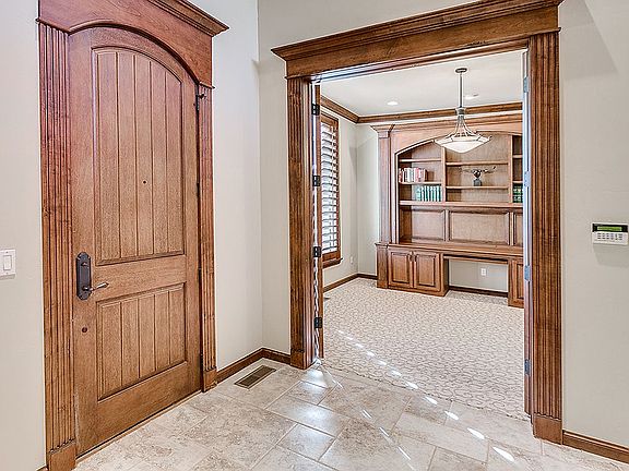 This stately traditional 4/3.5 home is set on a sprawling corner lot lined with mature crape myrtles. Fresh paint, new carpet and well-appointed finishes make this custom built home feel brand new. Impressive two-story foyer with graceful staircase is flanked by formal study and dining. Gourmet kitchen has butler’s nook leading to formal dining, tumbled travertine backsplash, granite counters, high-end appliances, and large center island that opens to breakfast room. Two-story great room with soaring brick fireplace and charming Juliette balcony; french doors open to her office or reading room. Huge downstairs master with bay window sitting area, and spa-like bath with sep vanities, light filled soaking tub, walk in shower, and spectacular custom closet that must be seen! Guest bedroom with en-suite bath is also located downstairs. Two bedrooms up with large jack & jill bath. Second upstairs living or game room has 2 balconies overlooking sunset views and the great room. Bonus 220 SF space is framed, plumbed and ready for finish out; perfect for 5th bedroom, exercise or media room with bath. Backyard with wonderful landscaping, covered porch and large sloping yard perfect for infinity pool. Iron privacy gate leads to 2 garages. Sprinkler and security systems.