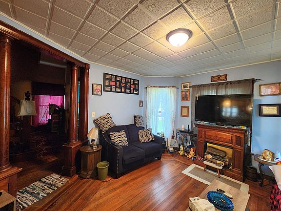 Charming Victorian style home in a quiet town with original woodwork, room divider, remodeled open kitchen-dining-living area, main floor laundry with half bath and large fenced in yard. The upper level has 3 bedrooms & a bathroom with a walk-in shower. Detached 2 car garage and rear shed. Off street parking in the rear. New storm door to be installed on the front soon. Updated electrical panel, newer furnace (2019), plumbing redone in 2019, outside sewer line from house to the street was redone roughly 5 -6 years ago and city main sewer lines were redone this spring. Metal roof on the garage and shed.