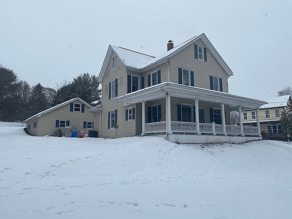 This house is nestled in the quiet borough of Halifax PA. Just a short walk will provide you with many activities such as a park, the school, and the susquehanna river. This 1495 sq ft home was built in the 1920s and has many amazing features from the time period including a beautiful wrap around porch. The kitchen offers hand made cabinets and plenty of space for an eat in table. There is a gorgeous wooden arch in the front room with original hardwood flooring. The spacious living room has plenty of space for a large sectional, optimal for family time! Upstairs there are 4 bedrooms and a completely remodeled bathroom. Outside the home includes off street parking with a 2 story 2 car garage, large paver patio, and a .29 acre lot perfect for entertaining guests at a summer cookout!