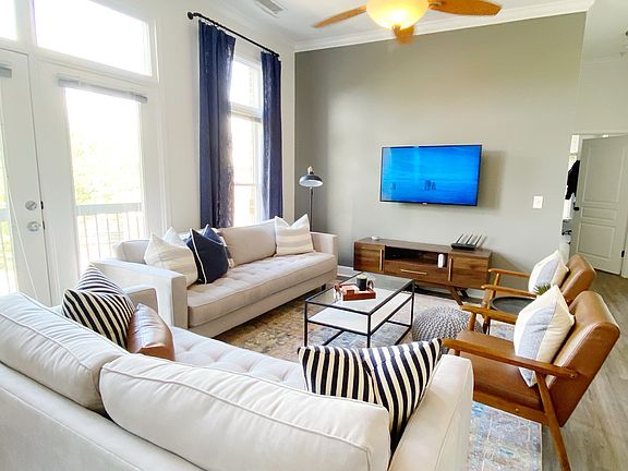 Beautifully furnished 2 bedroom / 2 bath condo available August 1st for 12- or 24-month rental! The unit's living room and dining area come fully furnished (see pictures). Dishwasher, microwave, washer and dryer, and parking are included as well. Newly renovated en-suite bathrooms and large bedrooms with walk-in closets provide ample storage for students or longer-term renters. Google Fiber/Internet and water are also included in the rent. Located in quiet Southern Village, this first-floor unit is located within a secured-access building and a short 5-minute walk to campus bus service. Right outside the front door, you'll find Southern Village's main park, where the neighborhood hosts concerts, pumpkin and Christmas tree lots, and numerous events for all ages. Further, within steps, you'll find the neighborhood grocery store/market, coffee/ice cream shop, movie theater, restaurants, and specialty shops. Your quiet, off-campus retreat is ready for you and your roommate. Please message if you are interested! Rental term is for 12 or 24 months (at no rent escalation), starting August 1st. Water and Google Fiber are included in rent, with Duke Energy (electricity) paid by Landlord and reimbursed by tenants. Unit is non-smoking. Walk-throughs available by appointment.