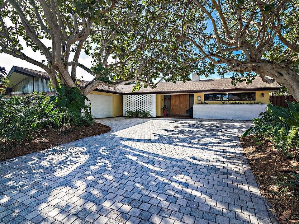 Something different...Beautifully maintained mid-century modern home loaded with fun, funky extras everywhere! Light, open floor plan with lots of windows, beamed ceilings with tongue and grooved wood, preferred South exposure, modern kitchen, walk in closets, and more. The back yard is a private retreat with lush vegetation, pool and a outdoor bedroom/gazebo. Paver driveway with oversized garage that is insulated with A/C and 1/2 bath. Room to park boat or R/V. The Village of North Palm Beach offers a golf course, tennis courts, clubhouse, olympic sized pool, boat ramp, boat storage, library, new elementary school and more!