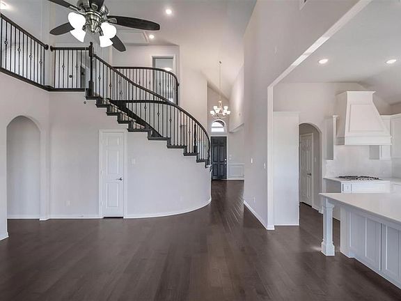 MLS# 13967702 - Built by First Texas Homes - Ready Now! ~ Gorgeous stone front entry, corner home site across street from pond & greenbelt, large covered patios in both Front & Rear, plenty of extras like curved staircase, butler's pantry, California kitchen island w quartz countertops, shaker style cabinets throughout, spacious breakfast Nook, ledger panel fireplace in family room, high ceilings, powder bath w added shower, oversized Dining room, Quartz countertops in master bath, spacious master retreat, Loft space upstairs perfect for the kids, & wood floors!