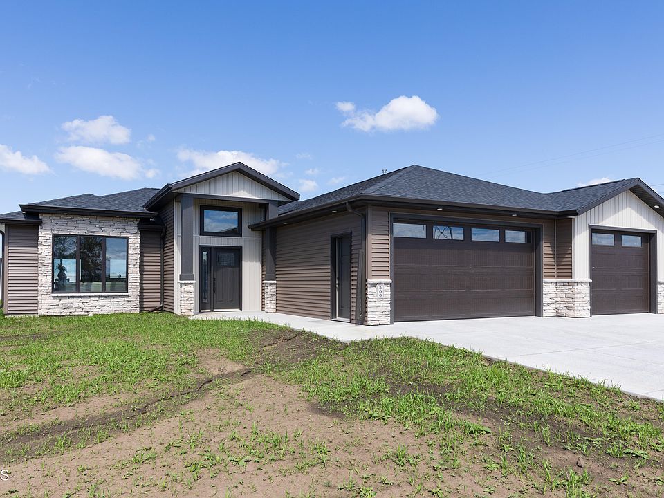 Welcome to 500 Mehrer Dr, a new construction slab on grade patio home in the Clear Sky Addition of east Bismarck. Within the 1,749 square feet you will find premium quality finishes. Enter the front living room with shiplap surrounding the fireplace and tray ceiling that adjoins to the open kitchen which provides quartz countertops, custom cabinetry with soft close drawers, stainless steel appliances, walk-in pantry and center island right next to the dining area that looks out to the covered patio. The primary suite includes a walk-in closet and bathroom with dual sinks, custom tiled walk-in shower & storage space. The 2 additional bedrooms are located near the full guest bathroom and laundry room with sink, cabinets and closet for storage. The attached 3 stall garage is fully finished with gas heater, hot & cold water and floor drain. Check out this home today. Taxes incomplete, buyer to verify.