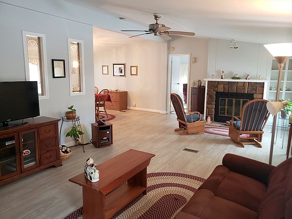Spacious, light and bright, 3 bed, 2 full bath unit near end of cul-de-sac in desirable Sandcastle, an over 55 community. With over 1,500 sq ft of living space, featuring a double sized living room, dining room and eat in kitchen, you won't feel like you've downsized here. Split floor plan with large bedroom on one side of the open plan living area and two bedrooms (or offices)/full bath on the other, allows for space and privacy. Sunroom off the dining room provides even more living space. Seller has done many updates over the years, including Harvey windows, siding, roof, on demand hot water system, and more. Park approval required. Pets allowed with park permission. Monthly fee covers taxes, water, sewer, trash and road maintenance.