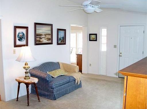 JUST LISTED! Truly move in ready two bedroom, two bath modular home in over 55 Sandcastle Estates! High end laminate that looks like real hardwood. Cathedral ceilings in living and dining room. Newer kitchen with pantry and lots of storage. Plenty of closet space. Many updates done in the last 5 years, including roof, windows, doors, more. This unit does not look or feel like an '86. Large master with two walk-in closets plus a third closet with shelves and master bath. Second good sized bedroom also features walk-in closet. Three season sunroom overlooks private patio. Storage shed. Sandcastle also offers seasonal inground pool, RV parking and events at the Castle club house, organized trips and more! Call today for private showing! $457 Park rent covers re taxes, water,sewer,trash, and road maintenance.