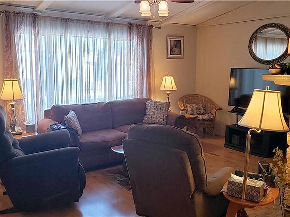 Newly listed in Sandcastle, an active over 55 community that now allows DOGS! This unit has so many updates - nothing to do here but move in! This one checks all the boxes - fireplace * carport * 3 season room * new kitchen * update baths * walk in shower. Great open layout with bedrooms at either end. Lots of closet space - linen, pantries, walk ins. All this PLUS new roof, AC system, updated furnace, recently paved enlarged drive. Beautiful yard with Pergola, outdoor sink, extra storage, sprinkler system, stone walkways - and its landscaped for privacy. Community amenities include clubhouse, seasonal pool, bocce and pickle ball courts and fire pit/grill stations. Park rent includes taxes, water, sewer and road maintenance.
