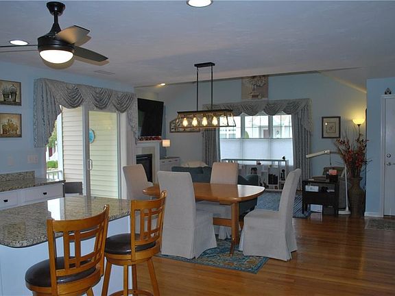 Beautiful one-level Condo featuring over 1,800 sf of finished living area, gleaming hardwood floors throughout, custom drapes and blinds, and a bright open floor plan. The spacious primary bedroom has a large walk-in closet and updated tile bath. The condo also offers a guest bedroom and a second full bath. Relax on the front porch or the private side deck. There is a large finished lower level family/hobby room, loads of storage, and 2 car garage. Desirable Berkeley Commons Condominiums.