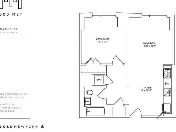 No Fee 1 Bed/ 1 Bath apartment with laundry in unit. -Right on top of the L and G trains at Metropolitan -Direct City Views Welcome to the residences at 500 Met; the areas most upscale and exciting new destination has arrived. Some will check in; you can move into boutique luxury. Situated above the new hotel and located at the epicenter of Williamsburg; where East meets West and North meets South. The modern residences at 500 Met provide you with an effortless and elegant lifestyle. Stunning state of the art finishes start with the living areas, defined by wall-to-wall satin oak floors and completely integrated kitchens blending seamlessly with floor-to-ceiling glass that, in most homes, looks out onto private terraces. Residences boast generous-sized bedrooms while sexy and sleek define the bathrooms featuring marble colored wet walls and matte black porcelain mosaic floors with black framed mirrors with storage vanities. The kitchens include stainless steel appliances, white quartz counters, and imported customized cabinetry. Central air and heat mean no obstructions to the panorama that is New York City. With residences starting on the 8th floor, the city is at your feet with views that go 360 degrees. Enjoy the Manhattan skyline as the sun sets west or take in the charming rooftops of Brooklyn each morning. Work out in the fully stocked gym or relax with your laptop in the manicured courtyard. Other building features include cyber doorman, bike storage* and parking*! Here you can truly have it all- Equidistant from McCarren Park, the waterfront or the Northside all whims are possible. The G and the L train are literally outside your door, and its a quick trip seven blocks to the J and the M. *Building entrance located at 491 Keap Street* *Additional fee