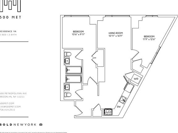 *2 Bedroom 2 Bath unique layout* *Split Bedrooms* *Floor to ceiling windows* Welcome to the residences at 500 Met; the areas most upscale and exciting new destination has arrived. Some will check in; you can move into boutique luxury. Situated above the new hotel and located at the epicenter of Williamsburg; where East meets West and North meets South. The modern residences at 500 Met provide you with an effortless and elegant lifestyle. Stunning state of the art finishes start with the living areas, defined by wall-to-wall satin oak floors and completely integrated kitchens blending seamlessly with floor-to-ceiling glass that, in most homes, looks out onto private terraces. Residences boast generous-sized bedrooms while sexy and sleek define the bathrooms featuring marble colored wet walls and matte black porcelain mosaic floors with black framed mirrors with storage vanities. The kitchens include stainless steel appliances, white quartz counters, and imported customized cabinetry. Central air and heat mean no obstructions to the panorama that is New York City.Enjoy the Manhattan skyline as the sun sets west or take in the charming rooftops of Brooklyn each morning. Here you can truly have it all- Equidistant from McCarren Park, the waterfront or the Northside all whims are possible. The G and the L train are literally outside your door, and its a quick trip seven blocks to the J and the M. Be the first to move in where its all happening next. *Pictures of similar unit, finishes identical, see floorplan for layout *Rent advertised is net effective *Building entrance located at 491 Keap Street