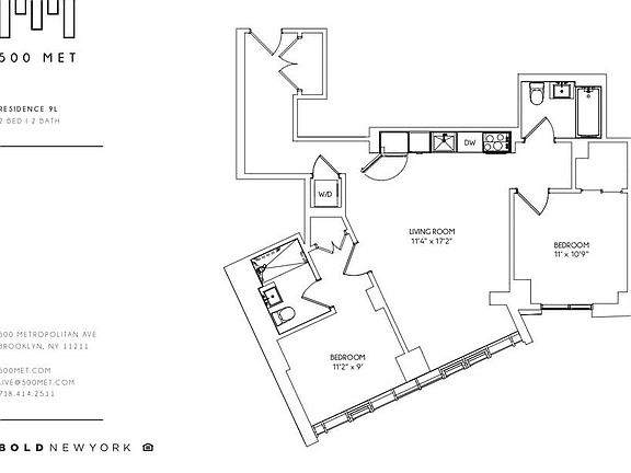 *2 Bedroom 2 Bath unique layout* *Split Bedrooms* *Floor to ceiling windows* Welcome to the residences at 500 Met; the areas most upscale and exciting new destination has arrived. Some will check in; you can move into boutique luxury. Situated above the new hotel and located at the epicenter of Williamsburg; where East meets West and North meets South. The modern residences at 500 Met provide you with an effortless and elegant lifestyle. Stunning state of the art finishes start with the living areas, defined by wall-to-wall satin oak floors and completely integrated kitchens blending seamlessly with floor-to-ceiling glass that, in most homes, looks out onto private terraces. Residences boast generous-sized bedrooms while sexy and sleek define the bathrooms featuring marble colored wet walls and matte black porcelain mosaic floors with black framed mirrors with storage vanities. The kitchens include stainless steel appliances, white quartz counters, and imported customized cabinetry. Central air and heat mean no obstructions to the panorama that is New York City.Enjoy the Manhattan skyline as the sun sets west or take in the charming rooftops of Brooklyn each morning. Here you can truly have it all- Equidistant from McCarren Park, the waterfront or the Northside all whims are possible. The G and the L train are literally outside your door, and its a quick trip seven blocks to the J and the M. Be the first to move in where its all happening next. *Pictures of similar unit, finishes identical, see floorplan for layout *Rent advertised is net effective *Building entrance located at 491 Keap Street