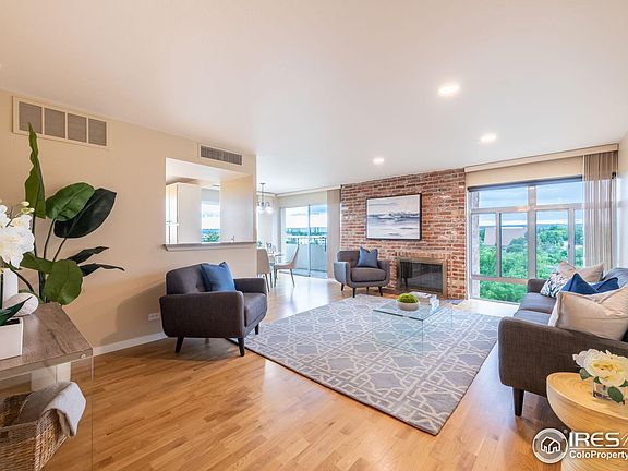 Sunny south-facing 6th floor condo w/ panoramic views from the Flatirons to Marshall Mesa to the plains plus park & pond just across the street. Enjoy easy one level living w/elevator access in this end unit at the beautifully maintained Bramford. Features laminate floors throughout, spacious living room w/ brick fireplace and sunny dining area opening to wraparound covered patio. Bedrooms include large closets and floor to ceiling windows. An additional bank of closets in the foyer provide lots of storage space within the unit plus there's a storage closet located on the 1st floor of the building. Just a short walk to parks, restaurants, shops, grocery store and library. Nearby bike paths and RTD bus stop allow for easy access to Downtown Boulder, CU, Denver & DIA. HOA Amenities include pool, hot tub, sauna, rec/fitness room, meeting room and outdoor sitting area. HOA fee includes heat, hot water and air conditioning.