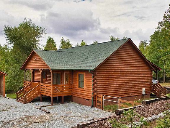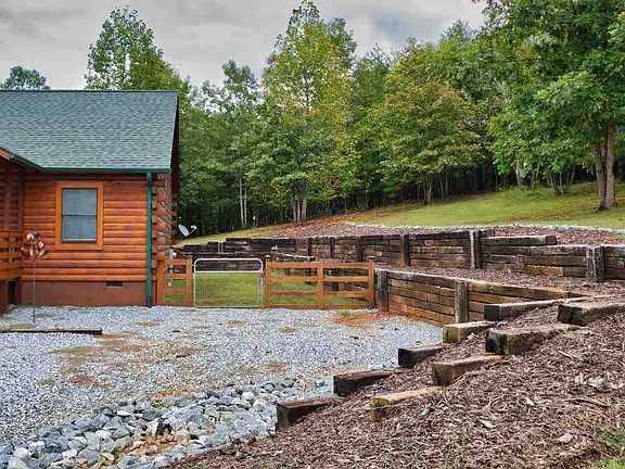 Looking for a log home in the western hills of North Carolina? Sitting on nearly two gently-sloped acres with mountain views (best in winter), this charming two bed/two bath home features a vaulted ceiling great room complete with fireplace, a screened back porch, a dedicated laundry room. This genuine log cabin is built from 6"x8" D-style white pine logs featuring a double tongue & groove where they stack together to keep out the elements. It's been recently re-stained with a top-quality Sikkens product, providing a soft sheen that let's you know the home has been well-maintained. The land has a gentle grade, and the longish driveway sets the cabin well off the paved road. The detached carport (which could be converted into a garage by simply adding a door) is not only convenient, but positioned so you'll have plenty of room to turn your vehicles around. An outbuilding for additional storage is tucked out-of-sight behind. As you walk around the cabin, you'll notice the rustic, tiered retaining wall of old railroad timbers creating an area perfect for gardening, and the fenced area is great for your pups. This residential lot is on the edge of the community, adjacent to both a 400 acre farm and an 80 acre property that's been land-locked for generations, both offering privacy, with the latter an expanse of nothing but trees and deer as your back yard neighbors. Looking over the rolling hills of the farm area offer additional mountain views. Inside, you'll find hardwood flooring of solid oak throughout most of the home, with ceramic tile in the two baths. A gas fireplace in the living area is waiting to add warmth and ambiance to chilly evenings in the four season climate. Open to the living area is a well-appointed kitchen with plenty of counter space, covered in durable laminate. The back door, alongside the kitchen, leads into the large, screened back porch, though a convenient area is left unscreened - perfect for your grill. The great room, with its vaulted ceiling, is in the center of this beautiful cabin. On the left side you'll find the large primary bedroom, featuring a huge walk-in closet and en suite, plus access to the screened porch through double french doors. On the other side is the second bedroom with the adjacent hall bath, and also the laundry room. Some of the furniture conveys with this charmer. The home is lightly used as a second home and features a central air/heat pump system, part of which is located below in the dry, crawl-space foundation, though with this climate, you may well have the windows open half the year! Water is supplied from a deep, private well offering excellent quality water. Waste is handled by a septic system. Being located in the foothills offers easy, practical living - this cabin is only a ten-minute drive into town. Hearthstone Ridge is quiet - just five and a half miles north of the county seat of Rutherfordton - and with low dues of only $396/yr, the gated community offers security and peace of mind. There's so much convenience, ease of access, beautiful mountain views, clean air and water... It's all waiting for you!