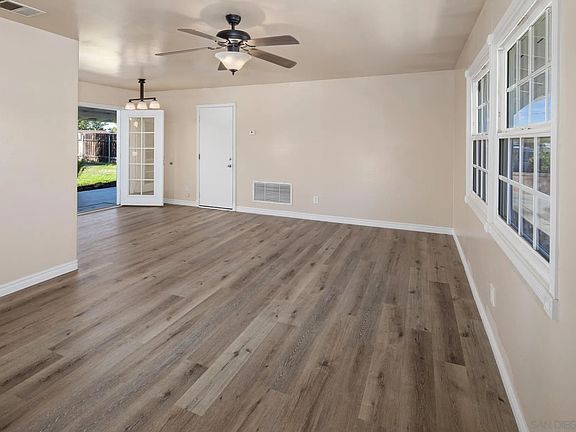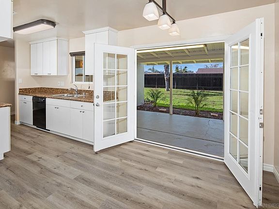 This beautifully renovated 3 bed, 1.5 bath ranch-style home is situated in the safe and quiet, family-friendly neighborhood of Lexington Gardens on the edge of Granite Hills in El Cajon. The freshly painted exterior and well-maintained landscaping makes for nice curb appeal and an inviting appearance to the home. This property offers several updates including brand new luxury vinyl plank flooring throughout, fully renovated bathrooms, galley kitchen with granite countertops and gas stove, dual-pane windows plus newly painted interior. There are beautiful French doors leading from the kitchen to the spacious backyard with a covered patio and plenty of potential for a pool or ADU. Additional features include forced air and a 2 car garage. Great location, conveniently nearby shopping, restaurants, schools, and much more.