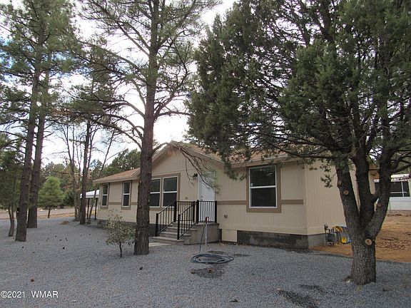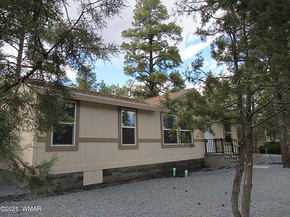 REDUCED ANOTHER 18K! This is a Brand New Never Occupied 2020 Durango Home Built by CAVCO Manufactured Home which Sits on a Heavily Treed .27 acre Corner Lot. NO HOA!!! It has a Split Floor Plan with Vaulted Ceilings and Fans in Every Room. The Eat In Kitchen has an Island, Pantry, and Solid Walnut Cabinets Galore. The Master Bedroom has a Walk in Closet, and Shower with Glass Doors. Huge Windows and Blinds in Every Room Make It Light and Bright! There is a circular driveway with 3 entrances to the oversized 2 Car Carport. Sellers have purchased an a Five Year Extended Transferable Warranty! Minutes away from Bison Golf Course, Fool Hollow Lake , Restaurants and Shopping! Seller is including 2 love seats, a queen size bed with headboard and a lazy boy lounge chair with purchase