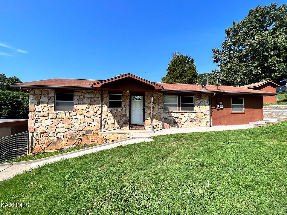 This is an Estate sale being sold ''as is'' in the charming downtown of Lenoir City. Constructed in 1976, so newer than most in the area, Stone & painted wood siding with a 2 car tandem garage in basement along with plenty of storage. Corner lot, all fenced with a storage shed that conveys with the home. Plenty of driveway space. The Interior of the home has wood floors in living room & bedrooms, tile everywhere else so no carpet. Kitchen has Oak cabinets with tile counter tops. New gutters in 2018 and new door hardware & locks. roof is 2005 & hvac 2006.