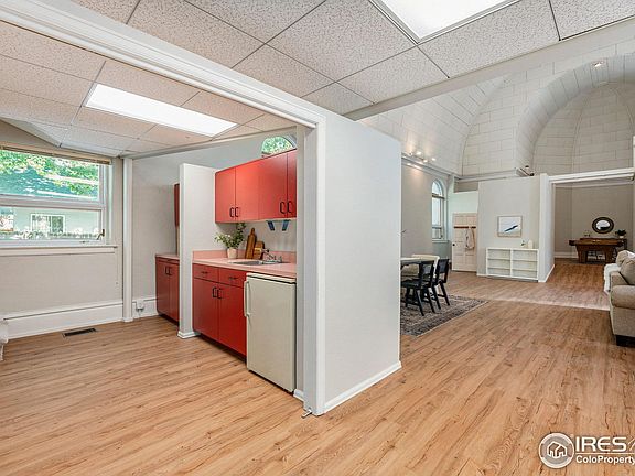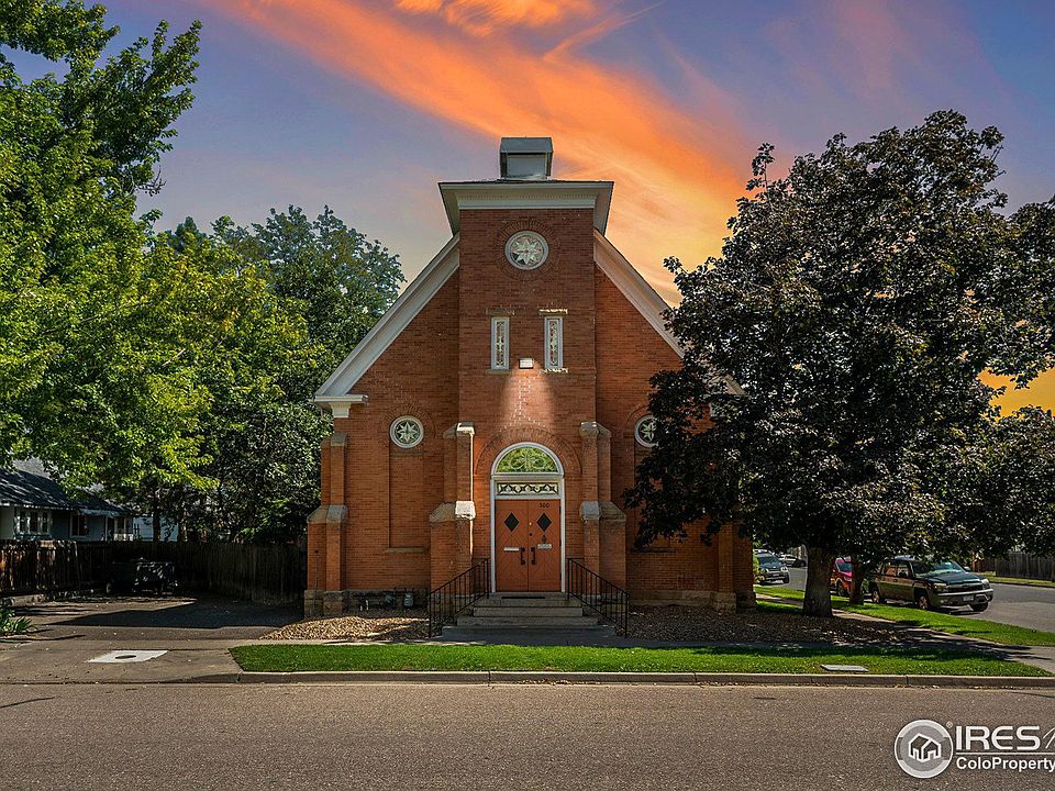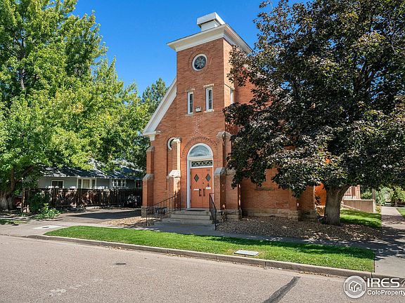 Historic St. Johns Church built in 1903 and located in Old Town Loveland, has been converted to beautiful living space with a 2 bedroom and full master bath addition in 1995. A modern kitchen was also built in 1995 and includes new stainless-steel appliances with gas range. The main hall/nave features LVT flooring and an incredible 30' barrel ceiling which will capture your eye the minute you walk into large double entry doors. Hardwood flooring in the kitchen as well as the 2nd bedroom which in the past has been used as an artist studio with tall windows. The front of the church has amazing curb appeal with stained glass windows. The large private all brick courtyard for Colorado outdoor living can be accessed from the main hall/living space, studio or through the large arched gate by the 3-car off street parking area. Additional long driveway on the southeast side of the church. The front and side yards are meticulously manicured and have full sprinklers. Live/work or many other uses by special review. Would be great for an artist studio, possible dance or music performance studio or multi family. Possibilities are plentiful. 2 blocks to the start of restaurants, breweries, shops, music, festivals, art etc. as Downtown Loveland has been redeveloped into the place to be for surrounding communities. What an opportunity!